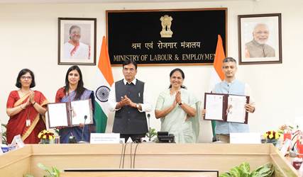 The MoU was signed in the presence of Union Minister for Labour & Employment and Youth Affairs & Sports Mansukh Mandaviya, Minister of State for Labour & Employment Shobha Karandlaje, and Secretary, Ministry of Labour & Employment Vandana Gurnani.